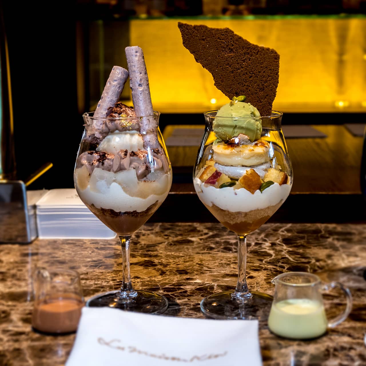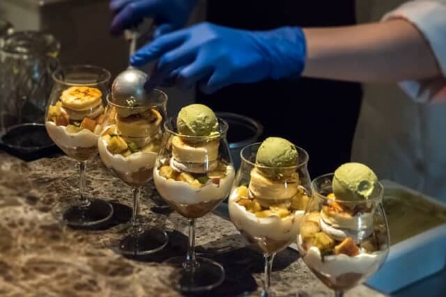 ディナーコースはバーに用意。リメイクイージーのパフェが作られる工程を、バーカウンターで見られます。