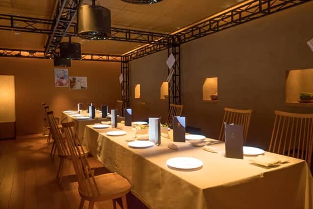 メニューは5種類。「マスターシェフ」¥32,000、「シェフ」¥28,000、「スーシェフ」¥23,000、「ベジタリアン」¥19,000、「キッズシェフ」¥16,000(6歳から12歳まで)。すべての料理は同じ映像が流れ、マスターシェフからスーシェフまではほぼ同じ料理に見えますが、値段の違いは使われる素材の違いです。事前予約制で、ディナーは火曜日から日曜日(月曜日が祝日の場合は翌火曜日が休業)、土・日・祝日はランチ営業も行います。