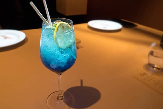 様々なドリンクメニューもそろえていますが、試しておきたいのがル・プチシェフ専用にバーテンダーが考案した赤いカクテルと青いモクテル。オーダーしたモクテルは、ブルーキュラソーとスミレのシロップに、レモンジュースとソーダを使い、レモネードのような甘さと爽やかな酸味のドリンクです。