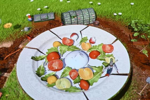 プチシェフの料理はいつもドラマチック。畑に水を撒き、収穫して食材を運んでいると、モグラが現れ畑を荒らします。そんな苦難を乗り越えて、美味しそうなサラダ(映像)を仕上げます。これらの動画は撮影も可能です。