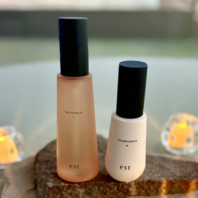 乾燥ケアというと“たっぷり塗る”ことに意識が向きがちですが、本当に大切なのは「うるおいをどう留めるか」。エストの新ライン「エスト ザ ローション EX」「エスト ザ エマルジョン EX」では、肌タイプに合わせて各3種類を展開。角層の水分を抱え込むようにキープし、みずみずしいハリ肌へ導きます。