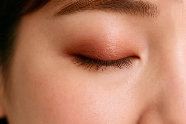 かつては目のキワ全体に濃い色を入れて“くっきり見せる”のが定番でしたが、今はそのやり方が老け見えの原因に。目を囲むように濃色をのせると、まぶたが沈み小さく見えてしまいます。