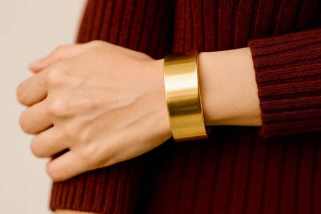 2025秋冬は「ゴールド」「メタリック」「マットな質感」のバランスが旬。太めのバングルや存在感のあるイヤーカフを一点投入するだけで、ニットやウール素材にリズムが生まれます。バーガンディやチョコレートブラウンの服と合わせると、今っぽく上品に仕上がります。