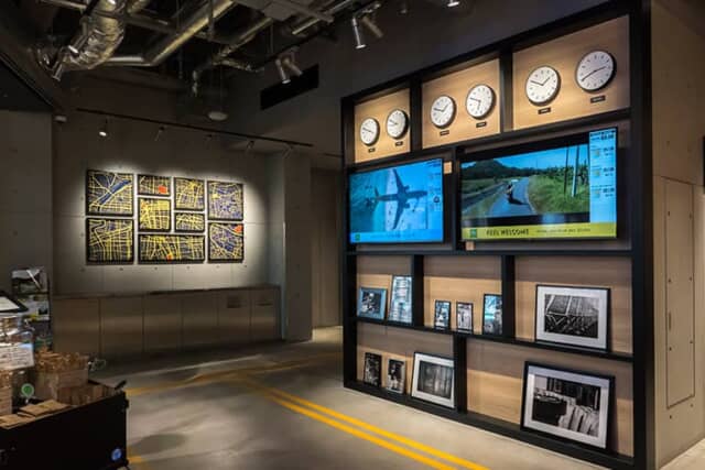 壁には名古屋周辺らしき地図や、「Market」の文字をオシャレに配置したアートがポップに飾られています。
