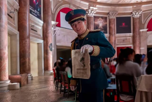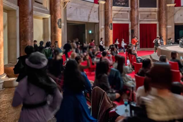 特に没入体験をウリにするイマーシブ・フォート東京は、ただショーを観るだけでなく、演者とゲストが会話できる機会もあります。席の近くに演者が出没することも多く、わたしたちは町の住人になった気分で物語に巻き込まれていきます。