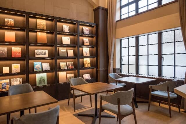 ▲本棚には京都にゆかりの書籍が並び、実際に読むこともできます