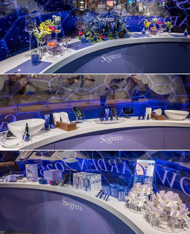 さらに紫のイメージカラーで華やかに彩られた会場には、「セグレタ プレミア」シリーズの香りなどを確かめられるタッチ&トライブースを用意。開催時間は11時から21時までなので、会社帰りにも楽しめます。