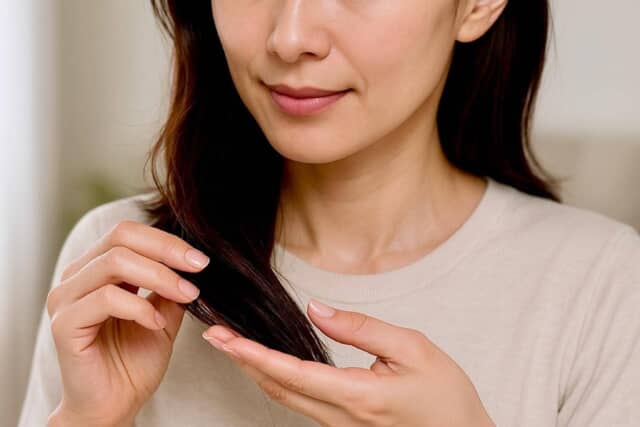 冬の髪が広がる大きな理由のひとつが、毛先の乾燥。40代以降はとくに内部の水分が抜けやすいため、毛先が硬くパサつき、広がりが加速しやすくなります。