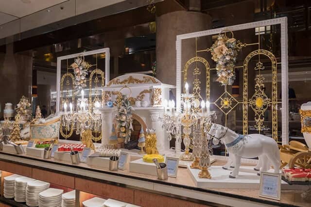 スイーツビュッフェが行われているのはホテル1階にある「マーブルラウンジ」。1984年に日本初のスイーツビュッフェが行われた伝統のラウンジです。『King&Queenのクリスマス』が始まった11月14日(金)には、高さ6メートルのクリスマスツリーもお披露目。周囲を華やかに彩ります。