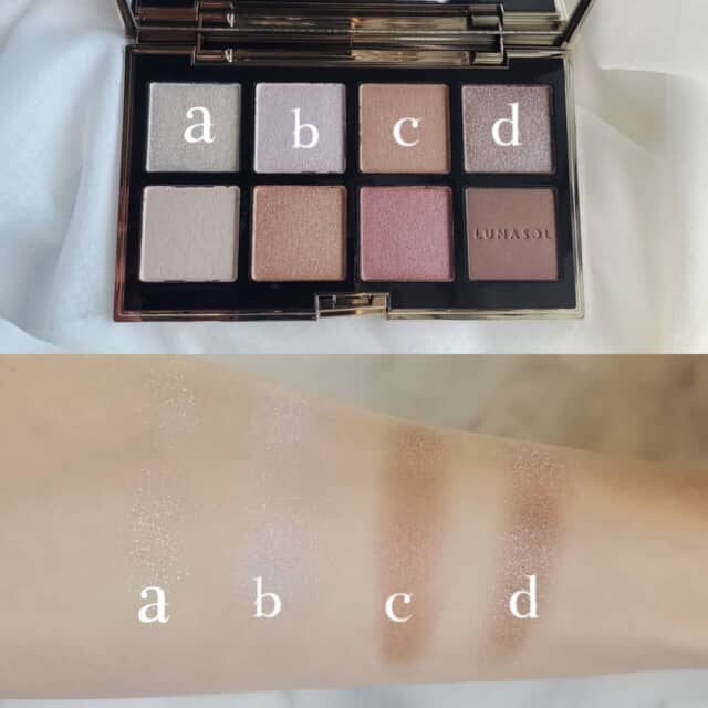 ベージュベースなので肌なじみが非常に良く、組み合わせ次第で雰囲気が自在に変化。特にラメの透明感が冬メイクと相性抜群で、光を受けるたびにまぶたがふわっと輝き、多幸感のある表情へ導きます。
