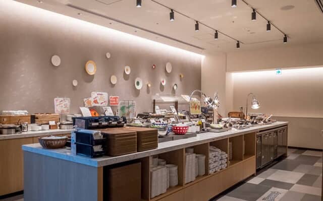 朝食は1階レストラン「梅ごろも」で6時30分から10時まで、1人¥2,200(税込)。11時30分から15時(L.0.14時30分)まではランチビュッフェを行っていて、大人¥2,970、小学生¥1,485、未就学児は無料です。