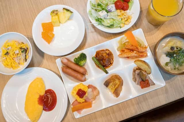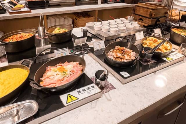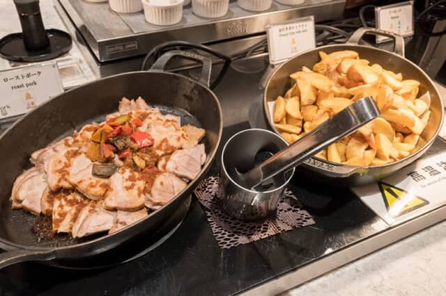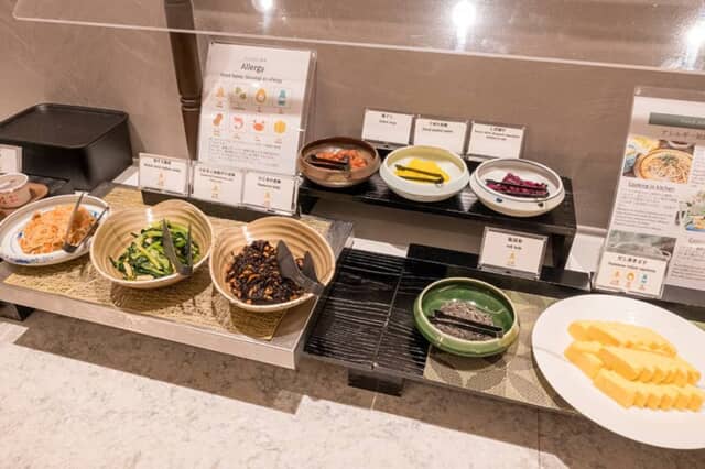 若鳥と牛蒡のデミトマト煮込みやローストポーク、ソーセージなど肉料理が多いのが嬉しい反面、野菜が充実しているのも健康的な証。もちろん湯葉やお豆腐、バラ寿司など、京都の味も体験できるのは、旅先の朝食ならではの魅力です。