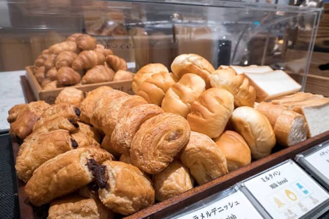 食パンやチョコレートデニッシュなどのパンも味をそろえます。特に京都パンの老舗「進々堂」のバケットやミルクパン、キャラメルデニッシュは注目です。開業は大正2年(1913年)。大正13年(1924年)に創業者の続木斉が日本最初のパン留学生としてパリで修行。京都市民なら誰もが知っている名店です。
