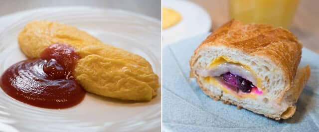 ▲ライブキッチンで提供される「オムレツ」と「梅ごろもプレスサンド」