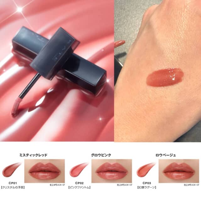 油と粉体を組み合わせた独自のリキッド処方で、つけたての色ツヤをキープ。軽いつけ心地なのに、厚みのあるツヤ膜が唇にフィットし、顔印象をパッと明るく見せてくれます。カラーバリエーションは全3色。うるおいと発色を両立し、みずみずしく“ぷるん”とした唇を演出します。
