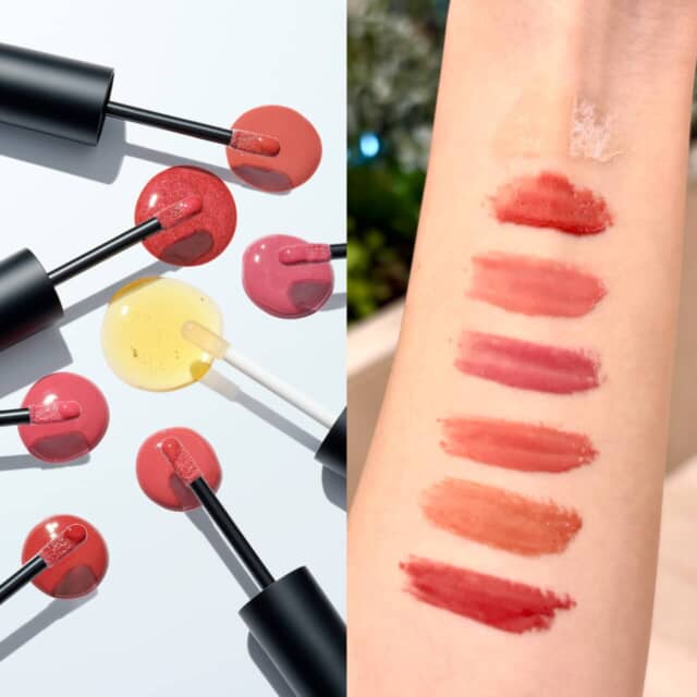 ラインナップは、ツヤを添える透明タイプの“ハニー”1種と、2層構造のリップカラー美容液6色。グロスとしても、下地としても、ナチュラルメイクにもマルチに活躍。ナチュラル派にも、しっかりメイク派にもぴったりの万能リップです。