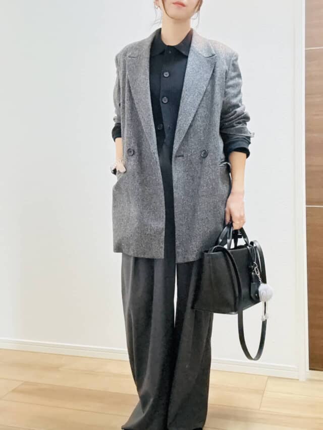 ゆったりしたウールジャケットがトレンドの今季。インナーに何を合わせるかで印象は大きく変わります。そこでおすすめなのが、襟付きニットをジャケットの中に忍ばせるスタイル。
