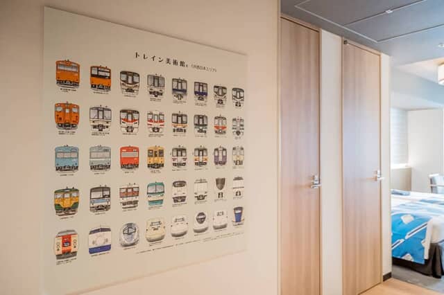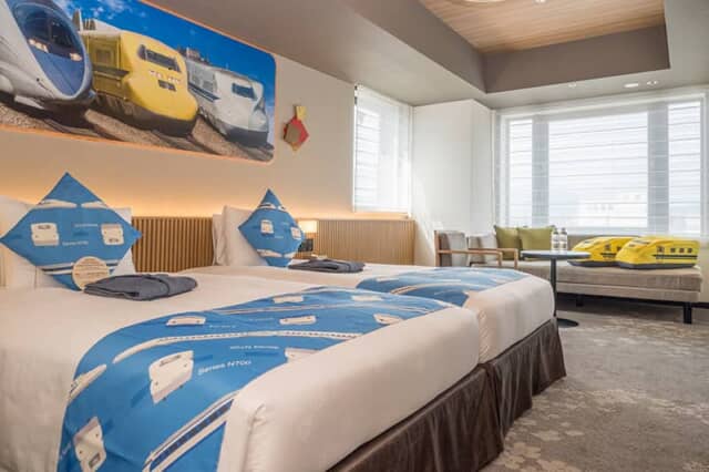 客室では「電車でGO!」を遊べるほか、特別仕様のベッドスローやクッション、抱き枕、鉄道模型などが展示される鉄道ファン必見の客室です。窓からはJR嵯峨野線の電車も見られます。