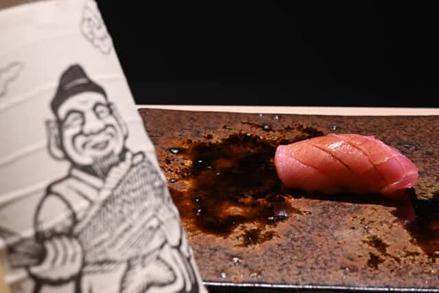 初めの一貫は小肌と相性のいい赤酢を使い、柔らかく仕上げています。赤身の早漬けは魚の旨味を引き出すため、醤油に3分ほど漬けたもの。伝統の江戸前を味わいました。