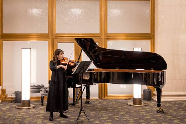 ▲不定期ですが、ピアノとバイオリンの生演奏も行われます