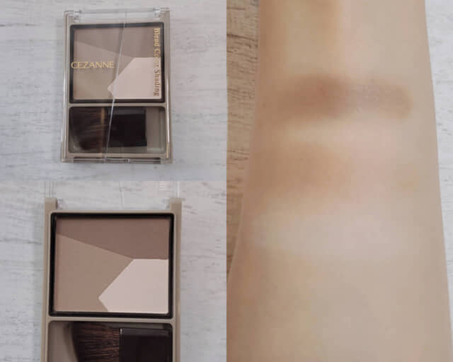 付属の斜めカットブラシがとても優秀で、フェイスラインや鼻筋に自然に沿うので、“影を入れてます感”が出ず、骨格そのものが整った印象に。仕上げにハイライトをおでこ中央・鼻筋・あご先へ。光と影がやさしくつながり、自然なメリハリのある顔立ちに見せられます。