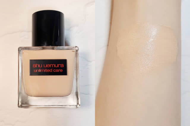 薄づきなのにハイカバーを叶える、シュウウエムラの「アンリミテッド ケア ツヤ セラム ファンデーション」。ブランド最高濃度のナイアシンアミドを配合し、メイクしながらスキンケア効果も期待できる一本です。