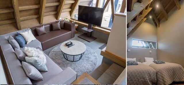 寝室は1階と2階に寝室が置かれ、ゆったりとしたソファースペースもあります。キッチンは別棟になっています。