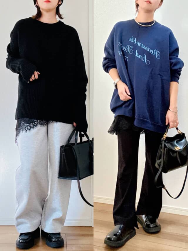 |スウェット×レースで“きれいめカジュアル”に。大人が使える華やぎテク