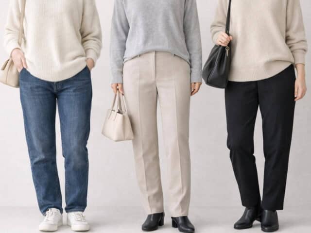 ▲軽さ・縦ライン・明るさを意識した“今のバランス”なら、ニット×パンツは大人世代でもすっきり見える