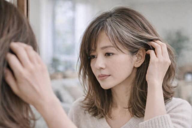 この段階で全体をしっかり染めてしまうと、色の重さが先に立ち、髪の柔らかさや立体感が失われやすくなります。「きちんとしているのに、どこか疲れて見える」と感じる原因は、白髪そのものではなく、染め方にある場合も少なくないのです。