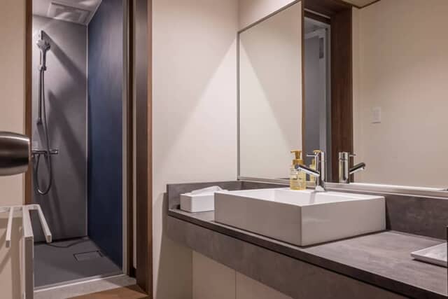 バスタブはありませんが、大浴場があるので問題なし。洗面とトイレも独立して使いやすい水回りです。