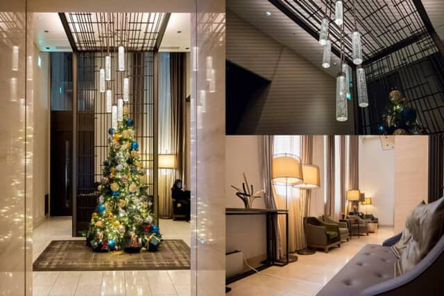 伺った時期が11月だったので、ホワイエには大きなクリスマスツリーが飾られ、より煌びやかな雰囲気に。ロビーに隣接したラウンジには、座り心地のいいソファーがあるほかコンシェルジュデスクも置かれ、観光のサポートやレストランの予約などをおこないます。