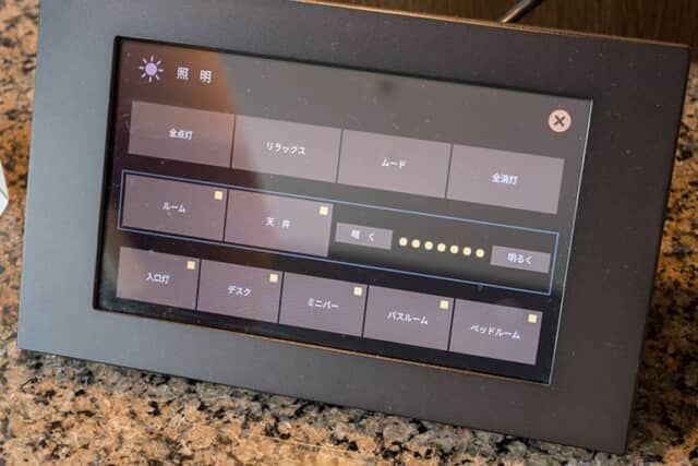 窓のシェードが電動の客室もあって、タブレットで開け締めができます。外国人旅行者も考慮して主要な言語を選べます。