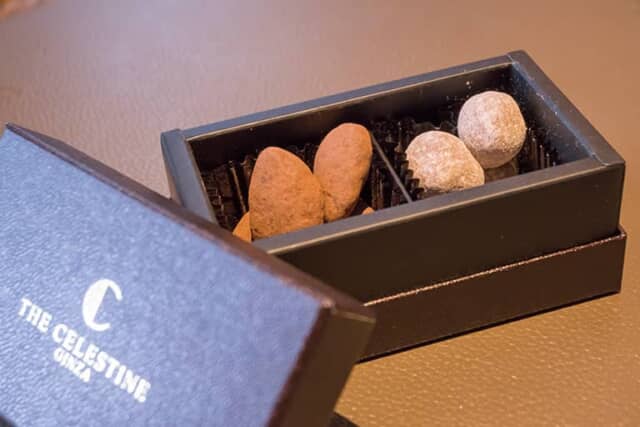 ▲すべての客室に用意されたウェルカムスイーツのチョコレート