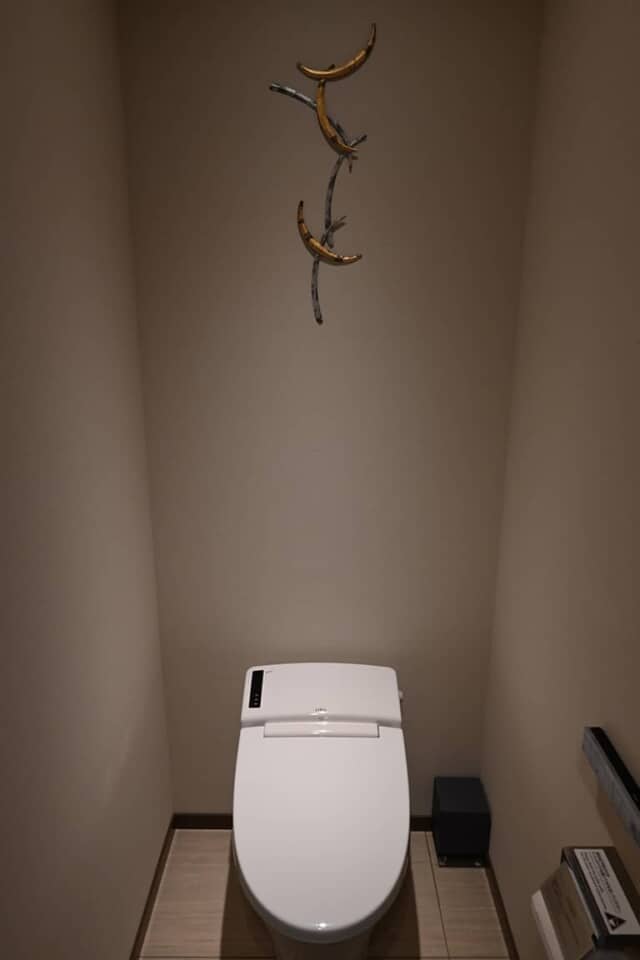 一部の客室になりますが、トイレにアートが飾れるのは珍しく、金と銀で流れや動きをモダンに表現した中林丈治氏の作品が飾られます。