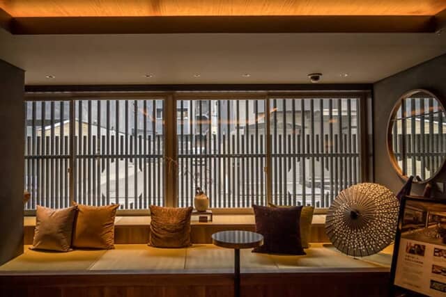 1階には宿泊者専用のラウンジがあって、京の風情を感じられる上質な空間を用意。ゆったりとくつろぎながら、ソフトドリンクや日本酒を楽しむことができます。