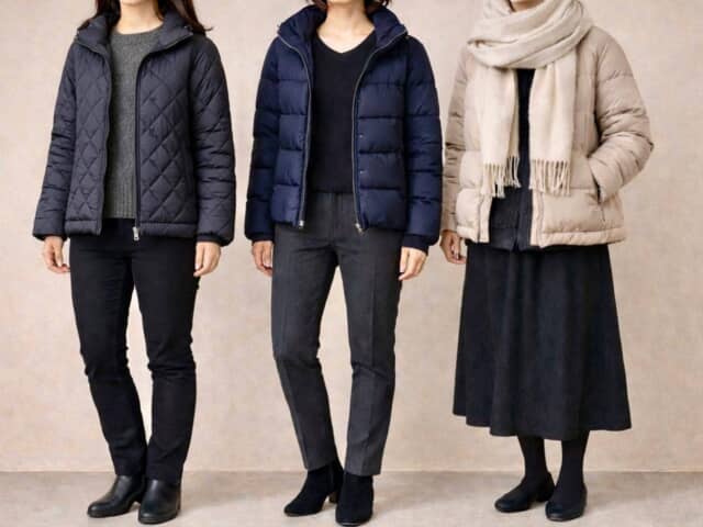 防寒テクを見直すときは、まずは重さの原因となっている部分を引き算する視点が近道。厚みが出るほど安心できるという感覚は自然なものですが、今は一枚一枚の質を高めることで重ねる枚数を減らすのが基本。枚数を抑えることでアウターのラインが際立ち、体の縦の線も戻ってきます。
