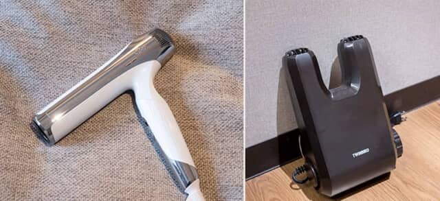 シューズドライヤーも全客室に用意。冬の雪はもちろん、9月を中心に雨の多い秋は濡れた靴を乾かせます。