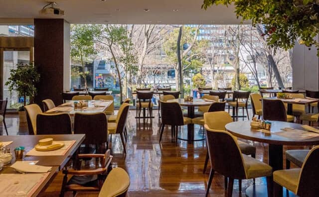 「ストロベリースイーツブッフェ」が行われているのはホテル2階にある<樹林>。広い窓からは武蔵野の面影を伝える木立が見られます。