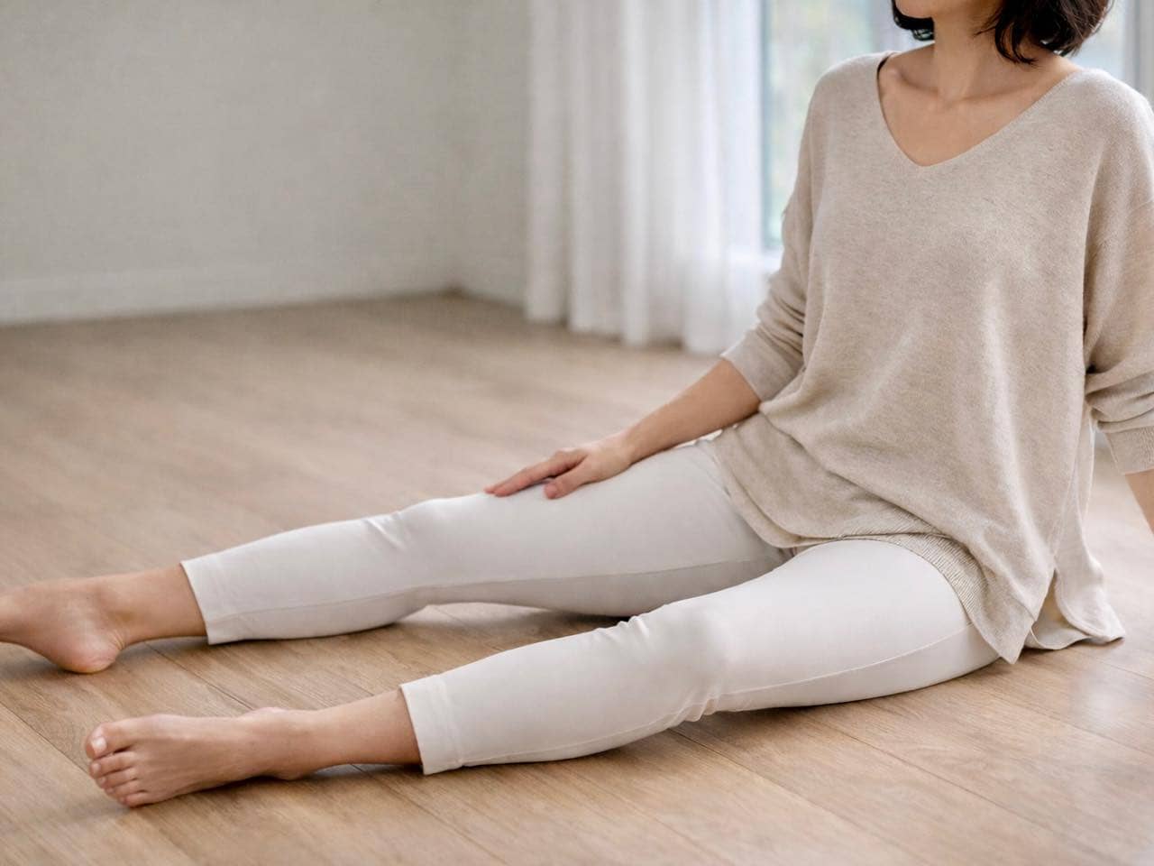 脚のラインがすっきり見える人は、股関節の動きがなめらか。そこで取り入れたいのが、ヨガの簡単ポーズ【トリコナアーサナ】です。体幹を安定させながら股関節まわりを整えることで、脚全体のバランスが整いやすくなります。