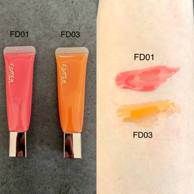 ▲エクセル「パンプフルドロップ」 全4色 各¥1,760(税込) / FD01 アプリコットジュレ、FD03 マンゴーグラッセ