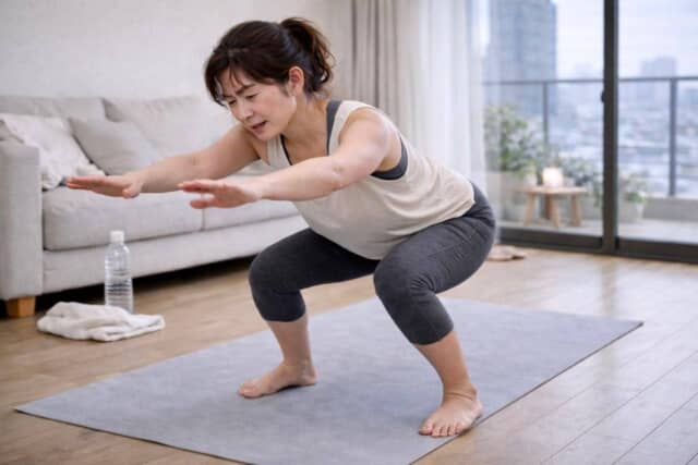 テレビや動画を見ながら毎晩スクワット30回。Cさんは疲れていても「休んだら後退する気がする」と、オフの日を作らず続けていました。
