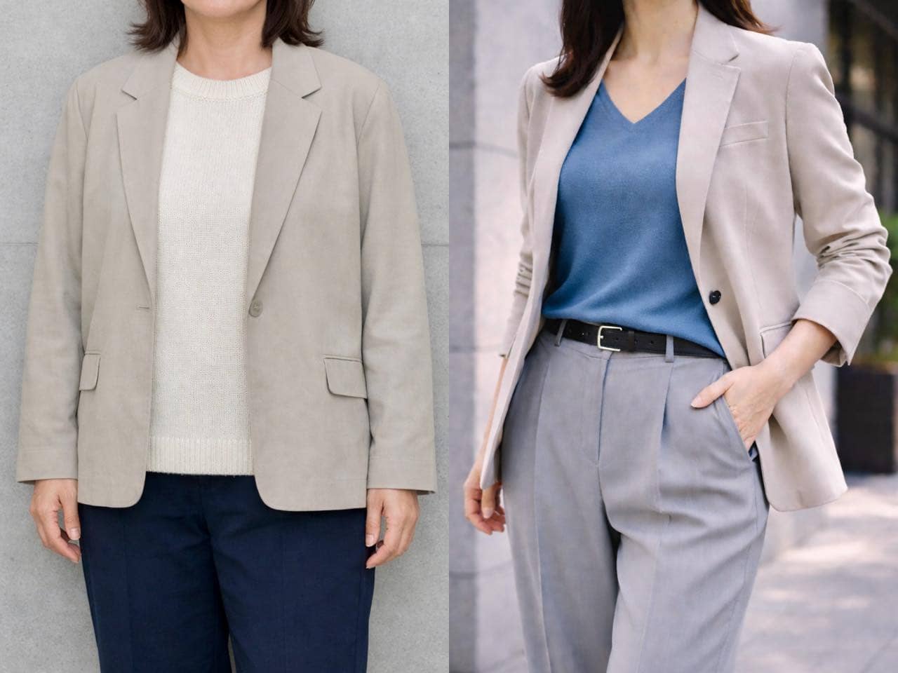 トップスやパンツの丈を見直してみる、パンツを普段よりワイド(細身)にしてみる、軽い素材を選んでみるなど、その小さな変化だけで、印象は動きます。若見えする人は、安心アイテムを活用しながらも、どこかで止まらない工夫をしているものです。