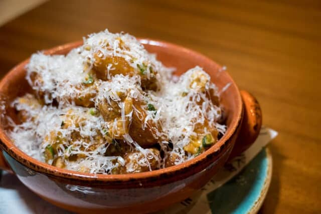 ハンバーガーに付き物と言えばポテトフライ。しかもTalk Shopでは、ちょっとクセ強の「ハラペーニョパルメザンポテト」をラインアップ。一度茹でた皮付きのじゃがいもを揚げ、外はカリッと、中が柔らかな食感。味付けはハラペーニョピクルスにスモーキースパイス、飴色玉ねぎが使われて、パルメザンチーズがたっぷりかかります。奥行きのある味わいにガツンと来る辛さはビールのお供に最高です。