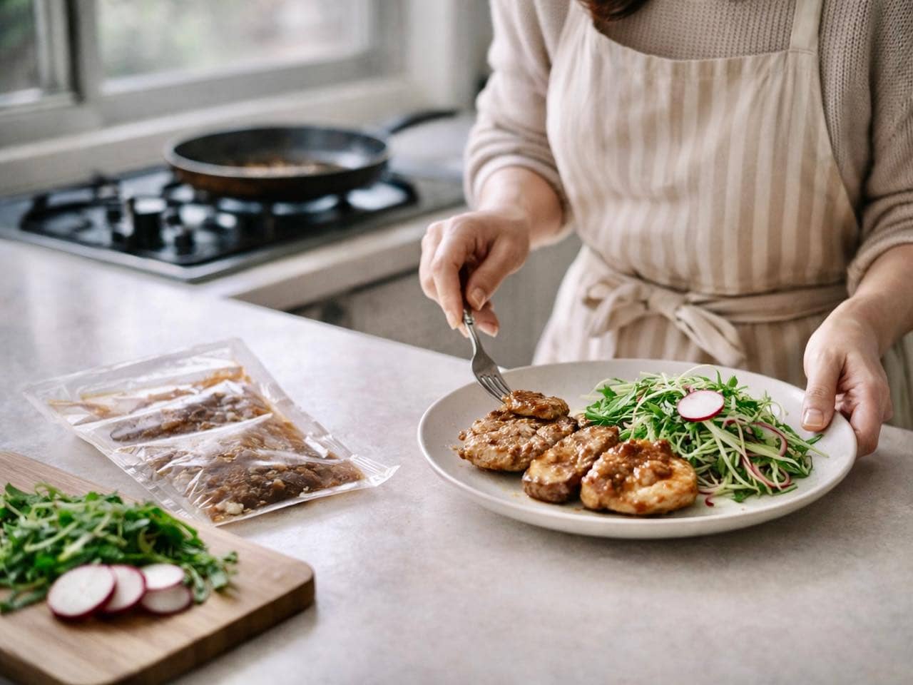 というわけで、我が家においてミールキットで作ったご飯は「母の手作り」ではない、という定義に落ち着きました。<text:なまけるための片付け/花太郎(整理収納アドバイザー) https://note.com/namake_kataduke> ※画像は生成AIで作成しています