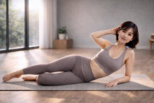 体重はそこまで増えていないのに、なぜか下腹だけが残る。そんな悩みを感じているなら、原因は腹筋ではなく“脇腹の筋肉”かもしれません。脇腹は日常生活であまり使われないため、気づかないうちに働きが弱くなりやすい部分。そこで取り入れたいのが、ピラティスの簡単エクササイズ【サイドレッグアップ】です。脚を上げるシンプルな動きながら、脇腹から体幹まで自然に刺激され、腰まわりのラインづくりをサポートします。