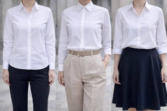 ▲サイズ感や着方が少し止まっているだけで、白シャツコーデはどこか昔の印象に見えやすい