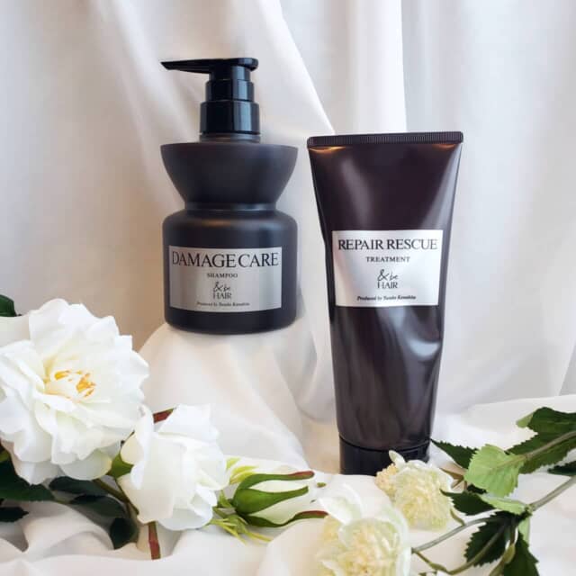 ▲アンドビーヘア(左)「ダメージケア シャンプー」400ml ¥1,760(税込)(右)「リペアレスキュー トリートメント」 200g ¥1,760(税込)