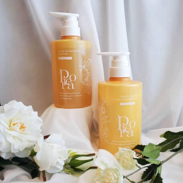 ▲ピオラ(右)「ボタニカルボリュームシャンプー(ジャスミン&イランイランの香り)」 450g ¥2,200(税込) (左)「ボタニカルボリュームトリートメント(ジャスミン&イランイランの香り)」 450g ¥2,200(税込)