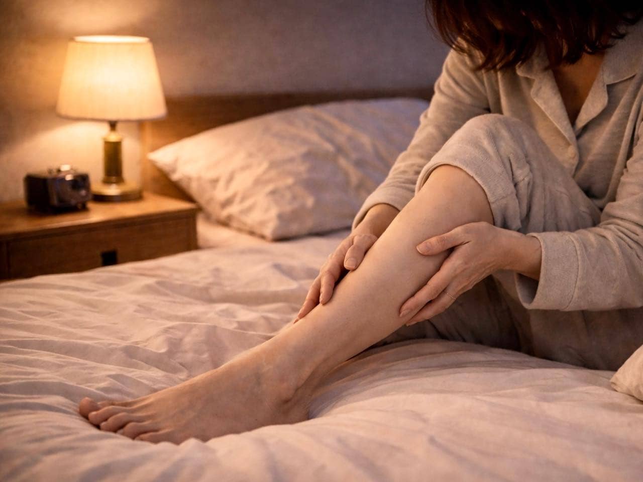 年齢とともに筋肉量は徐々に減少します。特に下半身の筋肉は影響を受けやすく、筋肉の柔軟性や持久力が低下する傾向が。筋肉が疲労しやすくなると、夜間のけいれんが起こりやすくなることがあります。